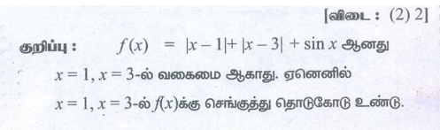 (25) f(x) = |x - 1| + |x - 3| + sin x எனும் சார்பு ℝ-ல் வகைமையாகாத புள்ளிகளின் எண்ணிக்கை