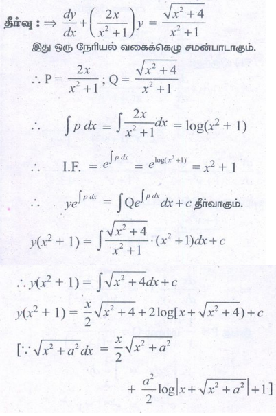 12th Maths : UNIT 10 : Ordinary Differential Equations : Exercise 10.7: First Order Linear Differential Equations Problem Questions with Answer, Solution in Tamil : 12th Standard
