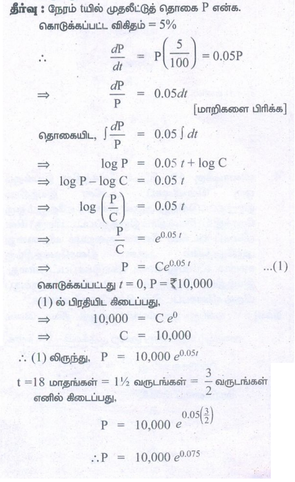 கேள்விகளுக்கான பதில்கள், தீர்வுகள் - பயிற்சி 10.8 : முதல்வரிசை சாதாரணவகைக்கெழுச்சமன்பாடுகளின் பயன்பாடுகள் (Applications of First Order Ordinary Differential Equations) | 12th Maths : UNIT 10 : Ordinary Differential Equations