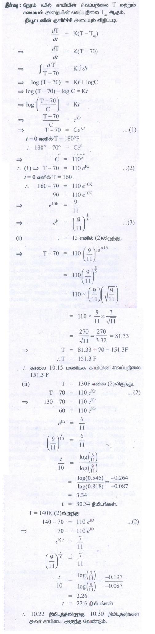 8. (i) T ≈ 151ºF (ii) t = 22.523. 10.22 நிமிடத்திலிருந்து 10.30 நிமிடத்திற்குள் அவர் காபியை அருந்த வேண்டும் .
