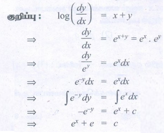 15. log(dy/dx) = x+y எனும் வகைக்கெழுச் சமன்பாட்டின் பொதுத்தீர்வு