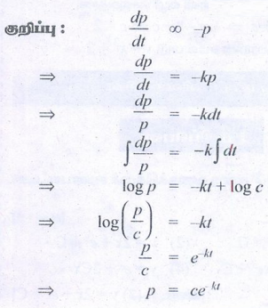 23. t எனும் நேரத்திற்குப் பிறகு மீதமுள்ள ஒரு பொருளின் அளவு P ஆகும். பொருள் ஆவியாகும்வீதமானது அந்நேரத்தில் மீதமிருக்கும் பொருளின் அளவிற்கு விகிதமாக அமைந்துள்ளது எனில், பின்னர்