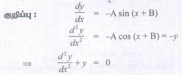 2. y = A cos(x + B), இங்கு A, B என்பன எதேச்சை மாறிலிகள் எனும் சமன்பாட்டைக் கொண்ட வளைவரை குடும்பத்தின் வகைக்கெழுச் சமன்பாடு