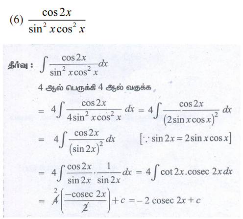 11 வது கணக்கு : அலகு 11 : தொகை நுண்கணிதம் Integral Calculus : பயிற்சி 11.5: தொகை காண வழிமுறைகள் (Methods of Integration) : பல்வேறு வினாக்களுக்கான பதில்கள் மற்றும் தீர்வுகள்