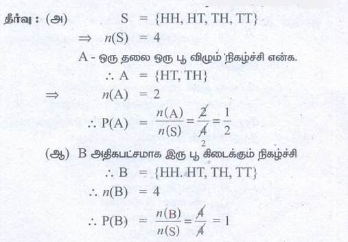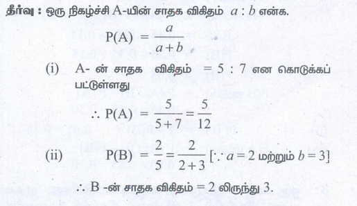 (9) (i) ஒரு நிகழ்ச்சி A நிகழ சாதக விகிதம் 5 க்கு 7 எனில் P(A)-ஐ காண்க