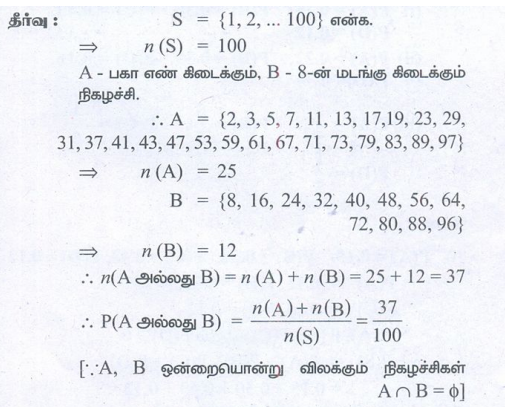 (6) முதல் 100 மிகை முழுக்களிலிருந்து ஒரு எண் தேர்ந்தெடுக்கப்படுகிறது. அது ஒரு பகா எண் அல்லது 8-இன் மடங்காக இருக்க நிகழ்தகவு யாது?