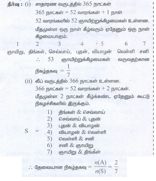 (4) (i) ஒரு சாதாரண வருடத்தில் (ii) ஒரு லீப் வருடத்தில் 53 ஞாயிற்றுக் கிழமைகள் வருவதற்கான நிகழ்தகவுகளைக் காண்க.