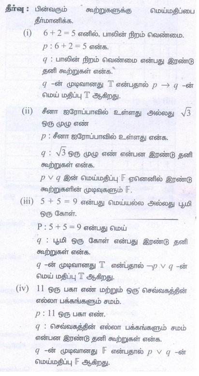 3. பின்வரும் கூற்றுகளுக்கு மெய்மதிப்பை தீர்மானிக்க.