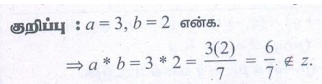 5. * என்ற ஈருறுப்புச் செயலி a*b = ab / 7 என வரையறுக்கப்படுகிறது. * எதன் மீது ஈருறுப்புச்செயலி ஆகாது?