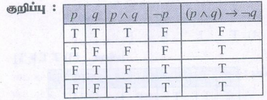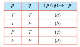 ( p ∧ q)→ ¬ p? ன் மெய்மை அட்டவணைக்கு பின்வருபவைகளில் எது சரி?