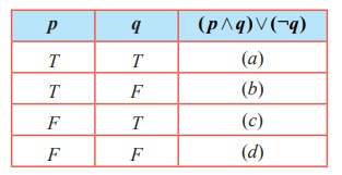 13. ( p ∧ q ) ∨¬q -ன் மெய்மை அட்டவணை கீழே தரப்பட்டுள்ளது.