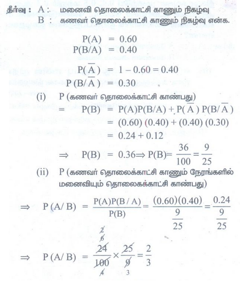 (5) திருமணமான ஆண்கள் மற்றும் பெண்கள் பிரதான நேரத்தில் காணும் தொலைக்காட்சி நிகழ்ச்சிகளைப் பற்றி ஒரு விளம்பர நிறுவனத்தின் நிர்வாகி ஆராய்ந்தபொழுது கடந்த காலப் பதிவுகளின்படி பிரதான நேரத்தில் தொலைக்காட்சி நிகழ்ச்சிகளைக் காணும் மனைவியர் 60 சதவீதத்தினர் ஆவர். மனைவியர் தொலைக்காட்சி நிகழ்ச்சிகளைக் காணும் நேரத்தில் 40% கணவர்களும் தொலைக்காட்சி நிகழ்ச்சிகளைக் காண்கின்றனர். மனைவியர் தொலைக்காட்சி நிகழ்ச்சிகளைக் காணாத நேரங்களில் 30% கணவர்கள் தொலைக்காட்சி நிகழ்ச்சிகளைக் காண்கின்றனர் எனில்
