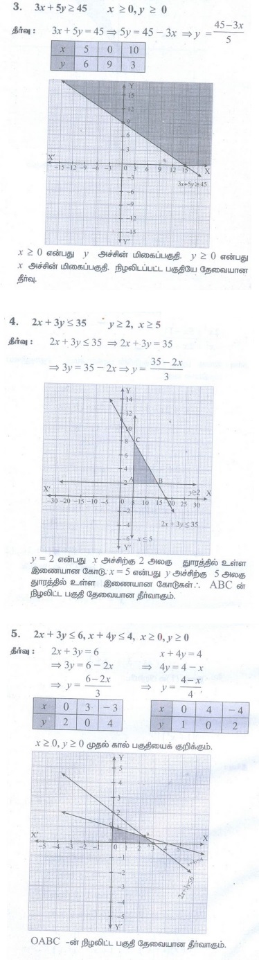11th Mathematics : UNIT 2 : Basic Algebra : Exercise 2.10: Graphical Representation of Linear Inequalities Problem Questions with Answer, Solution | Basic Algebra | Mathematics in Tamil : 11th Standard