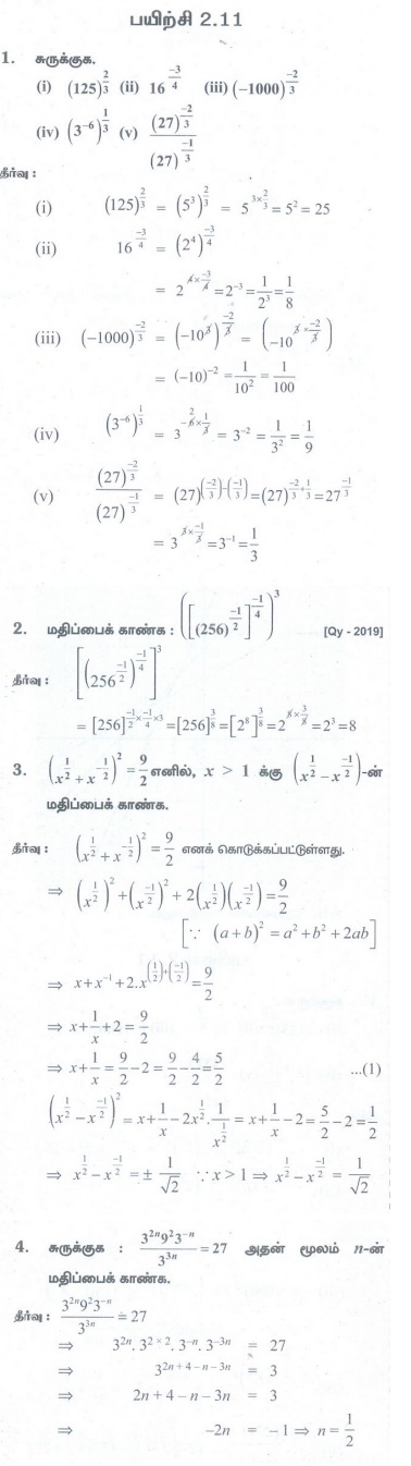 11வது கணக்கு : அலகு 2 : அடிப்படை இயற்கணிதம் : பயிற்சி 2.11 : அடுக்குகளும் படி மூலங்களும் - கணக்கு கேள்வி பதில்கள், தீர்வு | அடிப்படை இயற்கணிதம் | கணிதம் : 11 ஆம் வகுப்பு