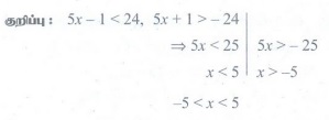 4. 5x - 1 < 24 மற்றும் 5x + 1 > -24 என்ற அசமன்பாடுகளின் தீர்வு