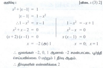13. x2 + |x – 1| = 1 -ன் தீர்வுகளின் எண்ணிக்கை