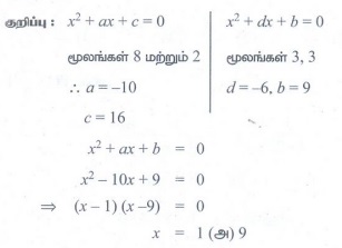 3, 3 எனில், x2 + ax + b = 0 -ன் மூலங்கள்