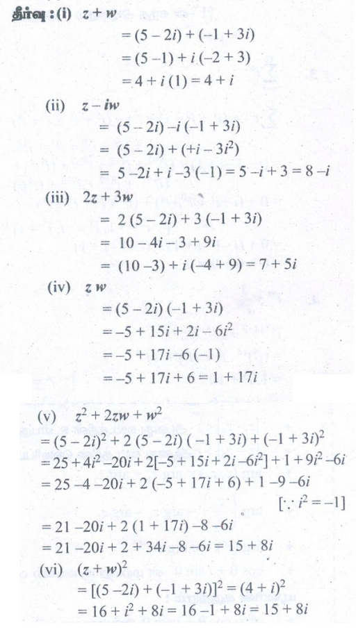 12th Maths : UNIT 2 : Complex Numbers : Exercise 2.2: Complex Numbers Problem Questions with Answer, Solution in Tamil : 12th Standard