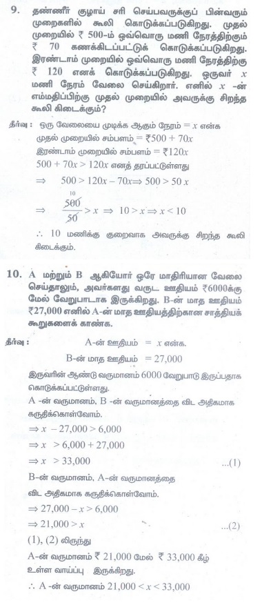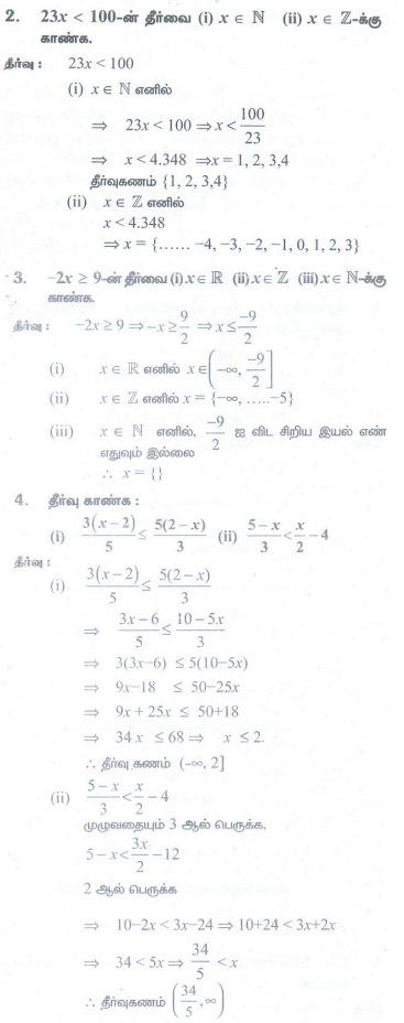 கணக்கு புத்தக பயிற்சிக் கணக்குகள், தீர்வுகள் மற்றும் பதில்கள் - கணிதம் : அடிப்படை இயற்கணிதம் : நேரிய அசமன்பாடுகள்
