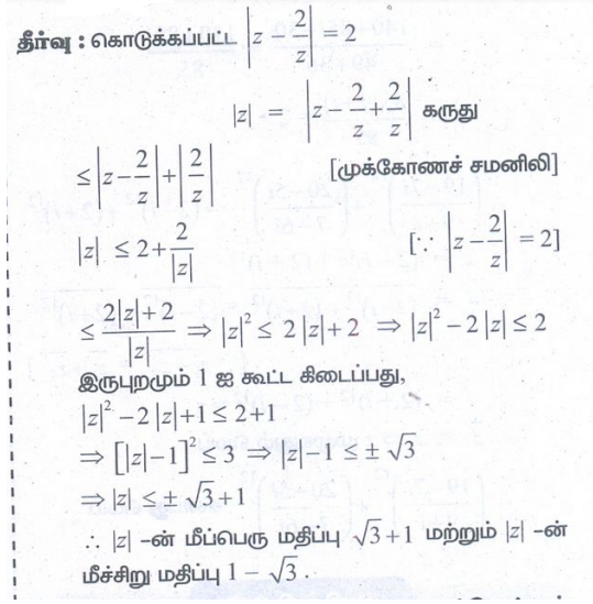 5. | z | = 1 எனில், 2 ≤ |z2 − 3| ≤ 4 எனக்காட்டுக.