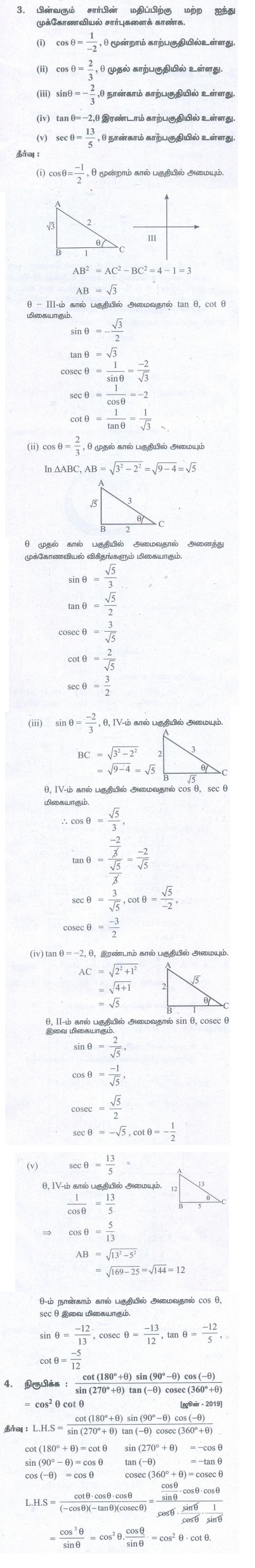 பயிற்சி 3.3 : முக்கோணவியல் சார்புகளும் மற்றும் அதன் பண்புகளும்