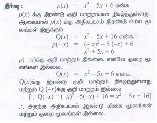 கேள்விகளுக்கான பதில்கள், தீர்வுகள் - பயிற்சி 3.6: டெஸ்கார்ட்டே விதி (Descartes Rule) | 12th Maths : UNIT 3 : Theory of Equations