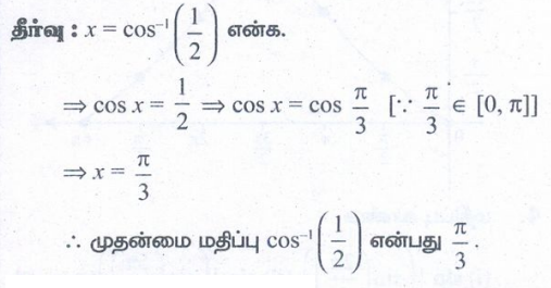 4. cos–l (l/2) −ன் முதன்மை மதிப்புக் காண்க.