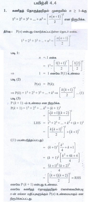 கணக்கு கேள்வி பதில்கள், தீர்வு | கணிதம் - பயிற்சி 4.4 : கணிதத் தொகுத்தறிதல் | 11th Mathematics : UNIT 4 : Combinatorics and Mathematical Induction