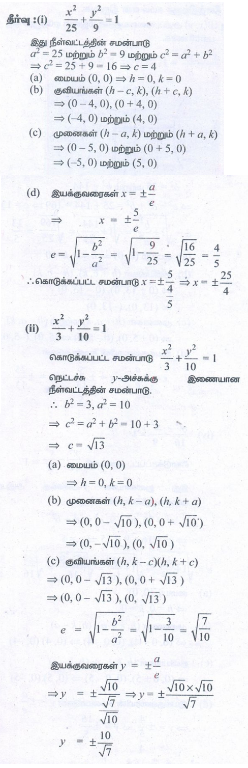 2. பின்வரும் ஒவ்வொன்றிற்குமான நீள்வட்டத்தின் சமன்பாடு காண்க :