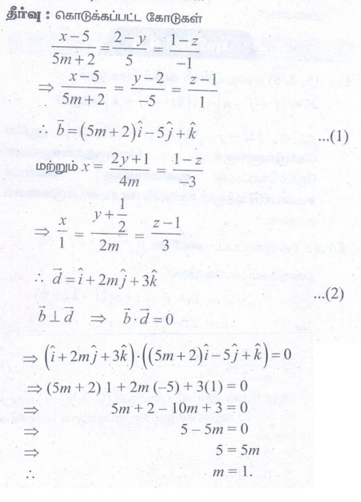 என்ற நேர்க்கோடுகள் ஒன்றுக்கொன்று செங்குத்தானவை எனில், m –ன் மதிப்பைக் காண்க.
