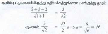 13. ஒரு சமபக்க முக்கோணத்தின் ஒரு முனை (2, 3) மற்றும் இப்புள்ளிக்கு எதிர்ப்புறம் அமையும் பக்கத்தின் சமன்பாடு x + y = 2 எனில் பக்கத்தின் நீளம்
