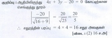 ஒரு பக்கம் 4x + 3y - 20 = 0 என்ற கோட்டின் மீதும் அமைந்திருந்தால், அந்தச் சதுரத்தின் பரப்பு
