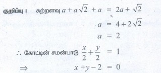 சுற்றளவு கொண்ட முதல் கால் பகுதியில் ஆய அச்சுகளுடன் அமையும் இருசமபக்க முக்கோணத்தை உருவாக்கும் கோட்டின் சமன்பாடு