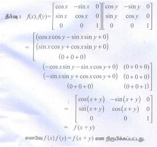 (ii) Aα + AαT = I என்ற நிபந்தனையை நிறைவு செய்யும் α −ன் அனைத்து மெய் மதிப்புகளையும் காண்க.