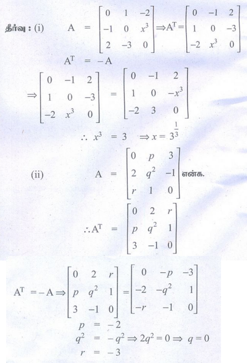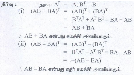 (ii) AB − BA என்பது எதிர் சமச்சீர் அணியாகும்