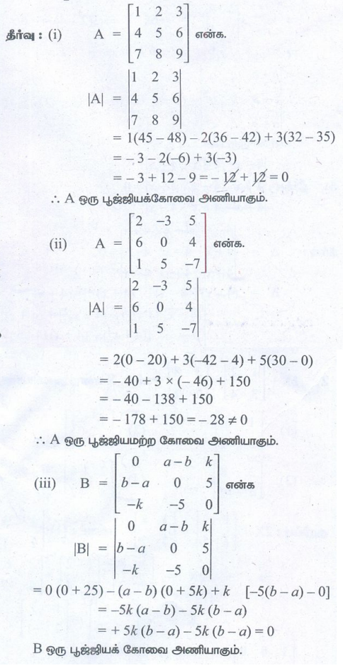 11 வது கணக்கு : அலகு 7 : அணிகளும் அணிக்கோவைகளும் (Matrices and Determinants)