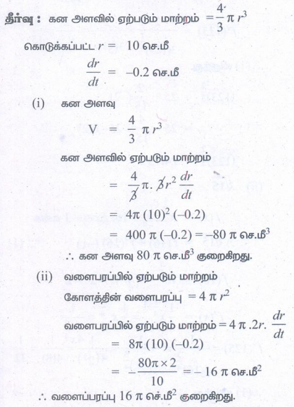 5. பனிக்கட்டியிலான ஒரு கோளத்தின் ஆரம் 10 செமீ. அதன் ஆரம் 10 செமீலிருந்து 9.8 செமீ-ஆக குறைகின்றது. பின்வருவனவற்றின் தோராய மதிப்பினைக் காண்க:
