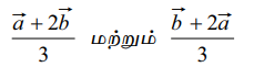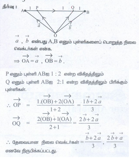 −ன் நிலைவெக்டர்கள் எனில் ABஎன்ற கோட்டுத்துண்டை மூன்று சம பாகங்களாக பிரிக்கும் புள்ளிகளின் நிலை வெக்டர்கள்
