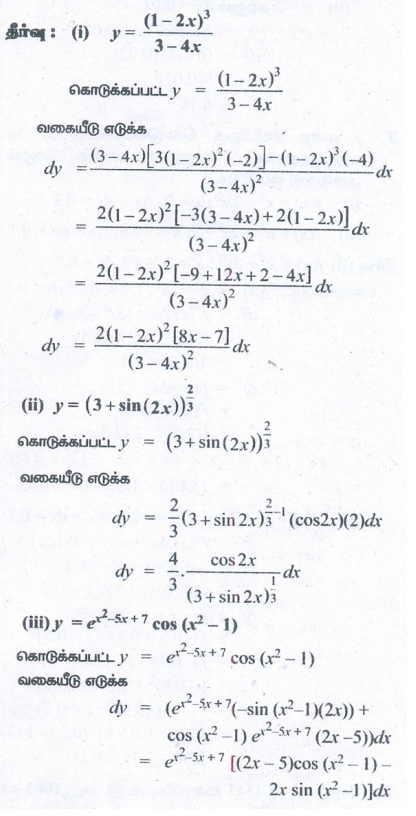 கேள்விகளுக்கான பதில்கள், தீர்வுகள் - பயிற்சி 8.2 : வகையீடுகள் | 12th Maths : UNIT 8 : Differentials and Partial Derivatives