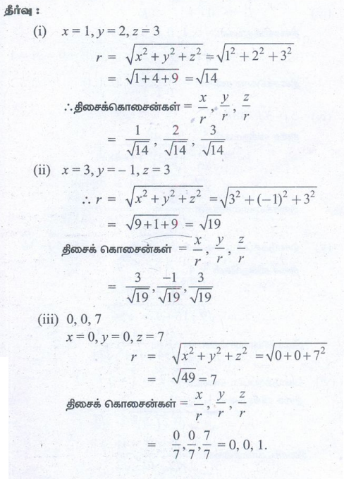 புத்தக கணக்குகளுக்கான பதில்கள், தீர்வுகள் | கணக்கு - பயிற்சி 8.2: திசைக் கொசைன்கள் மற்றும் திசை விகிதங்கள் (Direction Cosines and Direction Ratios) | 11th Mathematics : UNIT 8 : Vector Algebra I