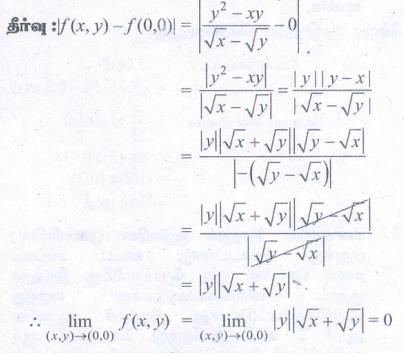 3. (x,y) # (0,0) -க்கு f (x,y) = y2 – xy / √x - √yஎனில், lim(x,y)→(0,0) f (x,y) = 0 என நிறுவுக.
