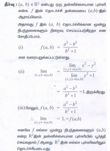6. சார்பு f (x,y) = x2 - y2 / y2 + 1 , ஒவ்வொரு (x, y) ∈ R2 -க்கும் தொடர்ச்சியானது என நிறுவுக.