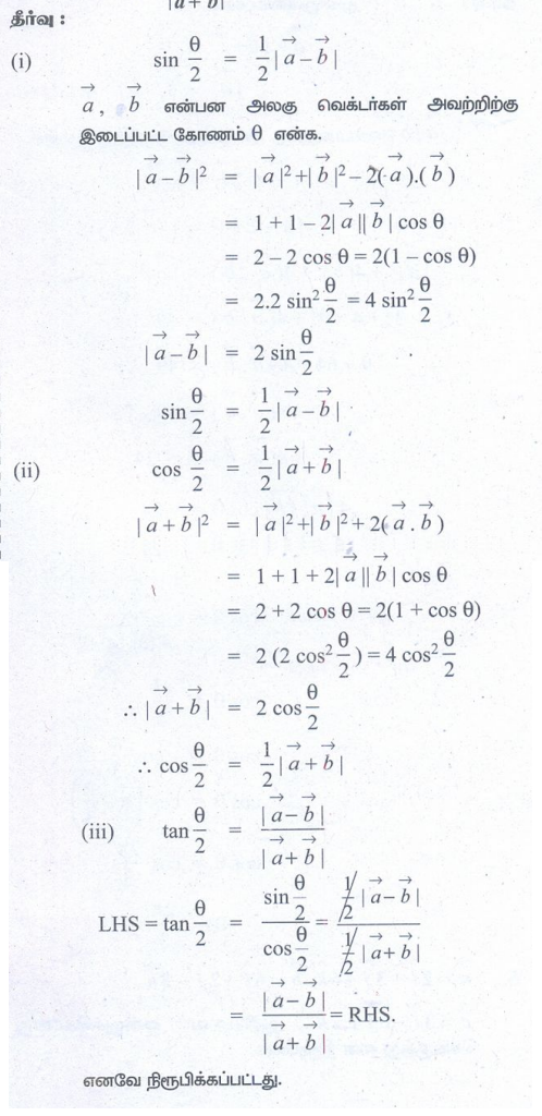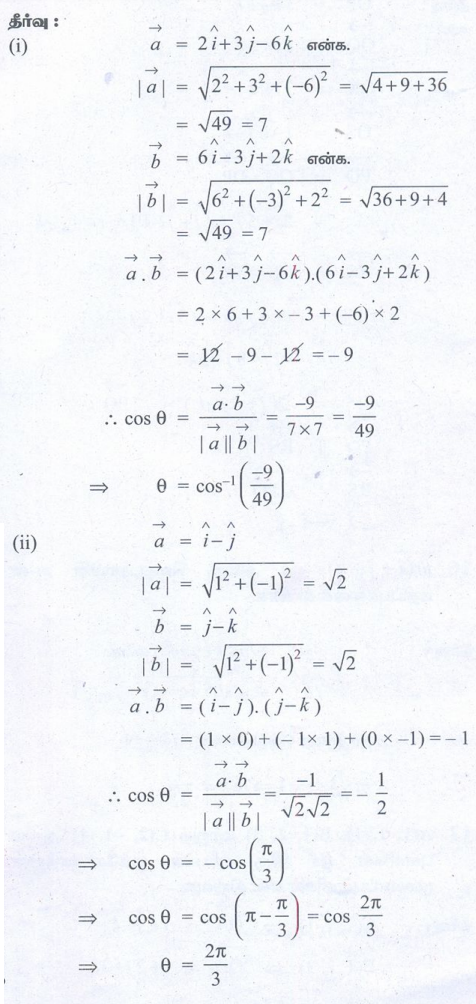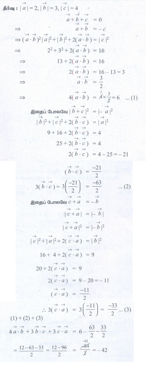 புத்தக கணக்குகளுக்கான பதில்கள், தீர்வுகள் | கணக்கு - பயிற்சி 8.3: திசையிலிப் பெருக்கம் (Scalar product) திசையிலிப் பெருக்கத்தின் பண்புகள் (Properties of Scalar Product) | 11th Mathematics : UNIT 8 : Vector Algebra I