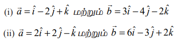 (4) கீழ்க்காணும் வெக்டர்களுக்கு இடைப்பட்ட கோணத்தைக் காண்க.