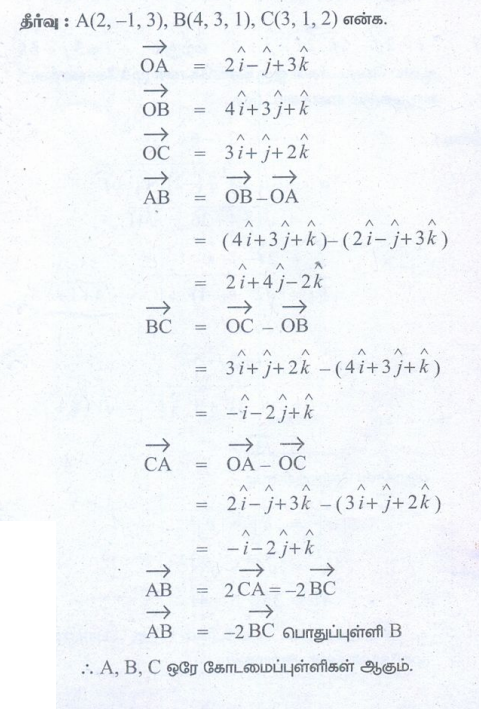 (9) (2, – 1, 3), (4, 3, 1) மற்றும் (3, 1, 2) ஆகிய புள்ளிகள் ஒரே கோடமைப் புள்ளிகள் எனக் காட்டுக.