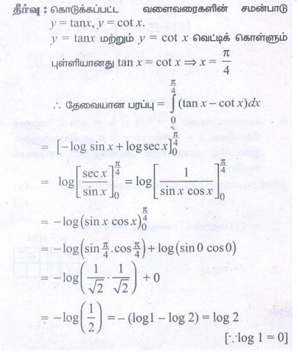 6. y = tan x, y = cot x மற்றும் கோடுகள் x = 0, x = π/2 -, y = 0 ஆகியவற்றால் அடைபடும்அரங்கத்தின் பரப்பைக் காண்க.