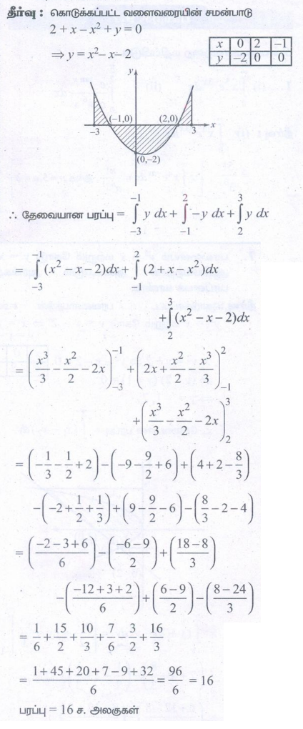 3. வளைவரை, 2 + x – x2 + y = 0, x-அச்சு , x = -3 மற்றும் x = 3 ஆகியவற்றால் அடைப்படும்அரங்கத்தின் பரப்பைக் காண்க.