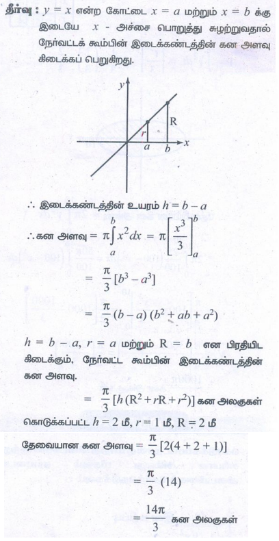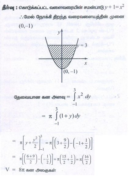கேள்விகளுக்கான பதில்கள், தீர்வுகள் - பயிற்சி 9.9 : ஓர் அச்சைப் பொருத்து பரப்பை சுழற்றுவதால் அடைய பெறும திடப்பொருளின் கனஅளவு (Volume of a solid obtained by revolving area about an axis) | 12th Maths : UNIT 9 : Applications of Integration