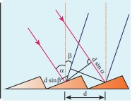 இதேபோன்று மற்றொரு பக்கமாக தொலைநோக்கியைச் சுற்றி முதல்வரிசை விளிம்பு விளைவு பிம்பம் செங்குத்துக் குறுக்குக்கம்பியுடன் ஒன்றினையும் வகையில் அமைத்து அளவீடுகளைக் குறித்துக் கொள்ள வேண்டும். இரண்டு நிலைகளுக்கும் இடையே உள்ள வேறுபாடு 2θ வைக் கொடுக்கும். இதன் மதிப்பில் பாதி, முதல் வரிசை பெருமத்திற்கான விளிம்பு விளைவுக் கோணத்தைக் கொடுக்கும் (θ) இது படம் 6.67 -இல் காட்டப்பட்டுள்ளது. ஒளியின் அலைநீளம் பின்வரும் சமன்பாட்டினால் கணக்கிடப்படுகிறது.