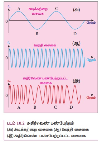 படம் 10.2 அதிர்வெண் பண்பேற்றம் (அ) அடிக்கற்றை